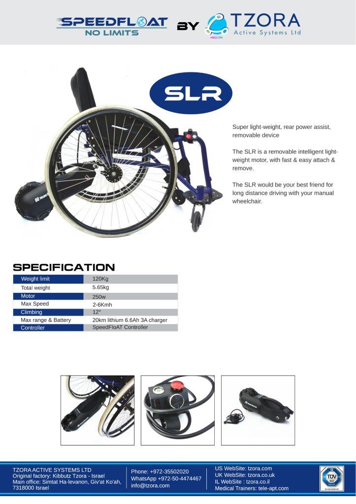 מנוע SLR של חברת SpeedFloAT הופך כל כסא ידני לכסא ממונע בעל עבירות משופרת. מנוע עוצמתי עם גלגל ייעודי כפול וג'ויסטיק מאפשרים נהיגה למרחקים ארוכים ללא מאמץ גם בדרכים משובשות חול דשא או רחובות מרוצפים.
